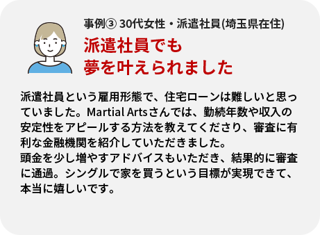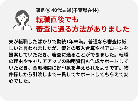 各金融機関の審査基準・特徴を熟知しているため、お客様の状況に合った最適な金融機関をマッチングできます。